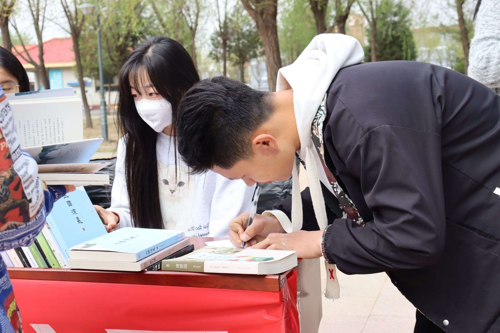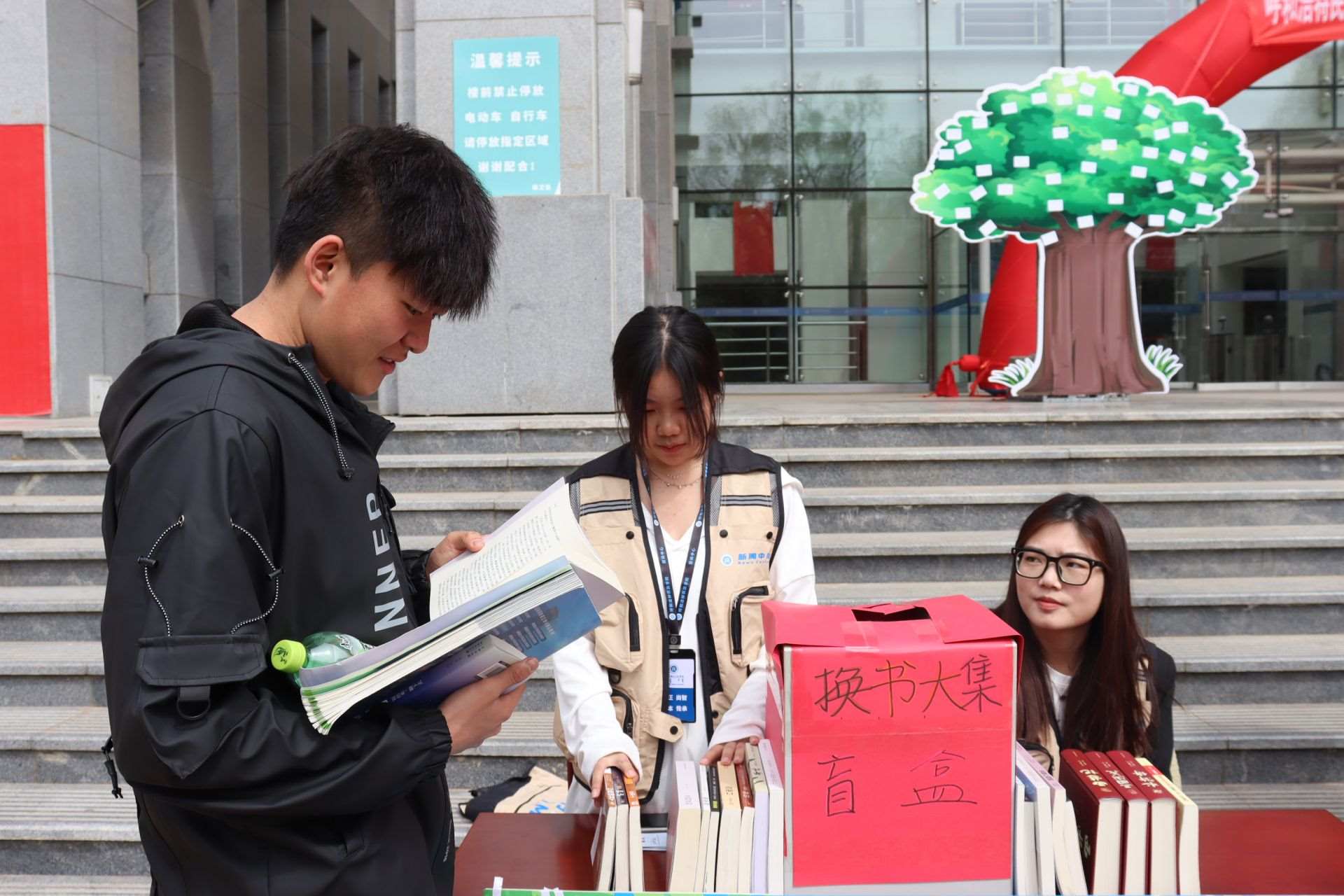 風(fēng)和日麗,春暖花開。4月23日,第28個(gè)世界讀書日,呼和浩特民族學(xué)院在南區(qū)圖書館前開展“換書大集”活動(dòng),現(xiàn)場(chǎng)共設(shè)置18個(gè)換書展位,特別設(shè)立換書“盲盒區(qū)”,現(xiàn)場(chǎng)換書300余本,同學(xué)們廣泛參與,場(chǎng)面火熱。