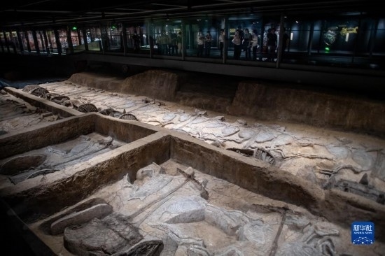 5月20日,在熊家冢國家考古遺址公園,游客在車馬坑前參觀。