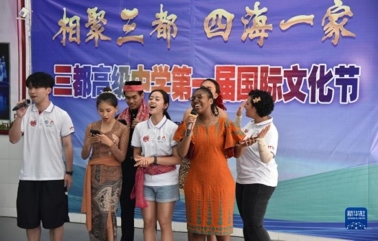6月5日,來華留學生在三都高級中學第一屆國際文化節(jié)上演唱歌曲。