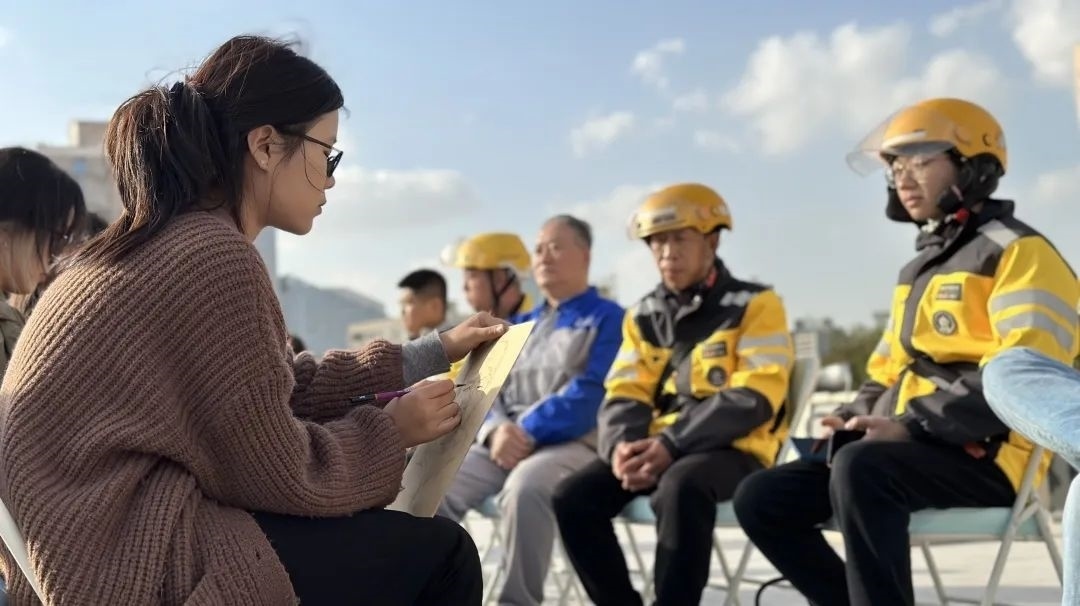 畫像小組的同學(xué)拿起手中畫筆,為團(tuán)結(jié)湖南北里社區(qū)老黨員、社區(qū)志愿者、騎手社工畫像。大家認(rèn)真描繪“模特”們和藹可親的形象,不時(shí)與“模特”聊天互動(dòng),聽(tīng)他們分享自己生活中的精彩故事。除此之外,部分同學(xué)圍繞垃圾分類、廉政教育等主題為社區(qū)繪制黨建板報(bào)。通過(guò)繪制板報(bào),傳播正能量,為社區(qū)宣傳添一份力。