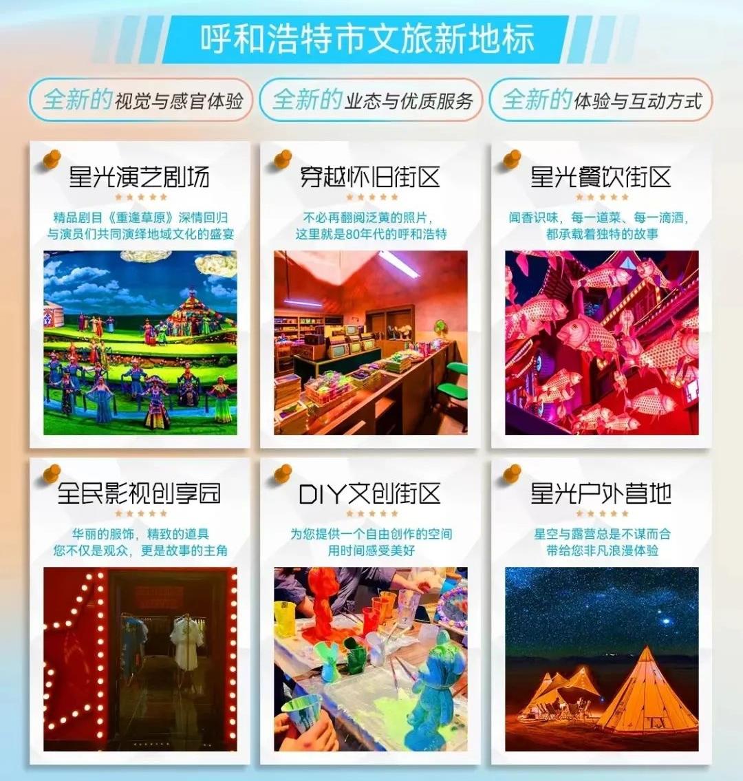 “敕勒川星光里”為免門票常態(tài)化經(jīng)營模式。場館內(nèi)4大主題區(qū)均可免費暢玩打卡,定時開展場景式演藝秀,數(shù)十名NPC帶您互動體驗,餐飲、萌寵、美妝、DIY,還有穿越80年代等等,戶外場地也將以其獨特的草原風(fēng)情和現(xiàn)代化的設(shè)施為游客市民們提供戶外演出和休閑露營的空間。