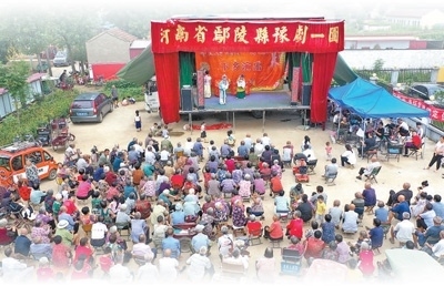 傍晚時分,天氣漸漸涼爽。河南許昌鄢陵縣彭店鎮(zhèn)謝坊村,村委會大院擠滿了人。72歲的老戲迷趙培龍手搖蒲扇,守在戲臺最近的位置……聽說村里來了戲班,他早早備好小馬扎,“每隔一段時間,就想聽聽劇團的戲,好著哩!”
