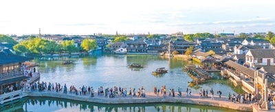 江蘇昆山錦溪古鎮(zhèn)景區(qū)游客眾多。楊惠新攝(影像中國)