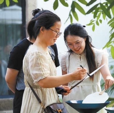 游客在柯橋古鎮(zhèn)體驗非遺漆扇制作。以上圖片均為柯橋古鎮(zhèn)保護(hù)中心提供