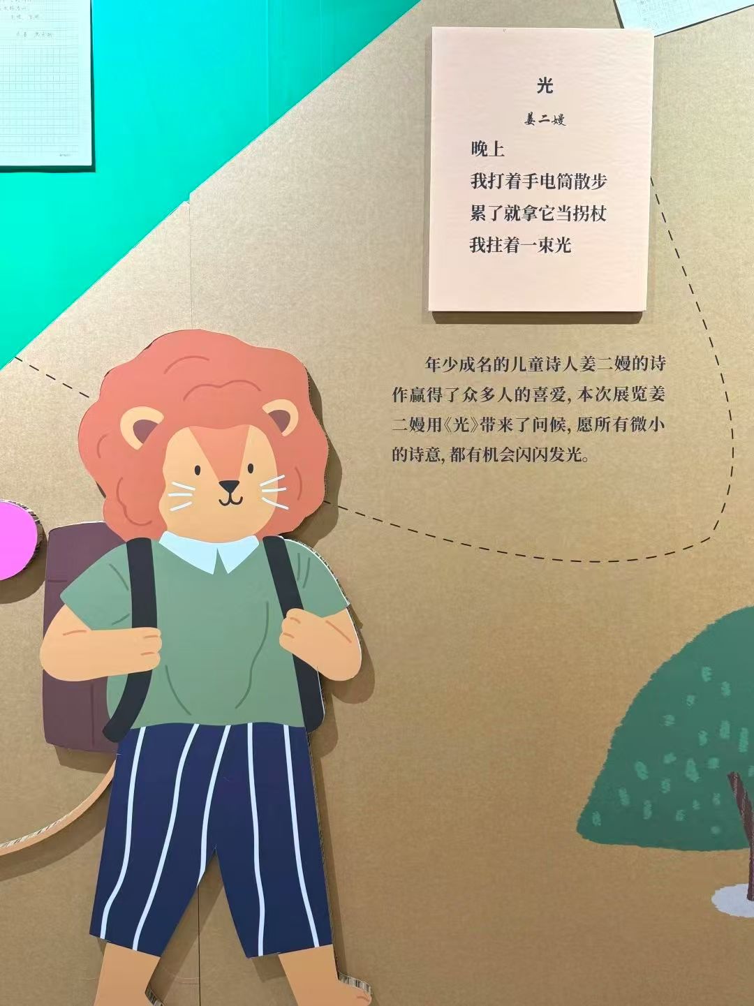 萌趣可愛的裝置、五彩斑斕的展墻、蹦蹦跳跳的字跡……展覽現(xiàn)場,大朋友小朋友宛如走進大型玩具工廠。據(jù)了解,此次展覽別出心裁地使用環(huán)保瓦楞紙作為主要搭建材料,不僅綠色環(huán)保,更使得整個展廳變身藝術(shù)品,是內(nèi)蒙古文學(xué)館推動綠色辦展的創(chuàng)新實踐。