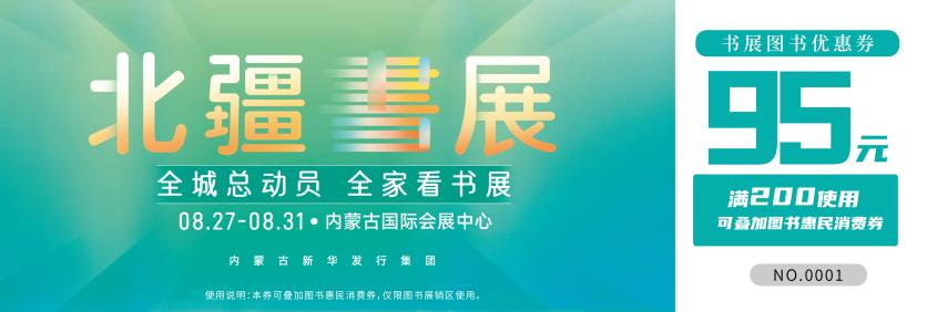 聯(lián)動(dòng)三:北疆書(shū)展紙質(zhì)券可以在以下文化場(chǎng)館、景區(qū)景點(diǎn)中領(lǐng)取,并于書(shū)展期間使用,疊加百萬(wàn)惠民補(bǔ)貼更劃算:呼和浩特市博物館、大青山紅色文化公園、敕勒川星光里、內(nèi)蒙古展覽館、將軍衙署博物館、呼和浩特市圖書(shū)館、內(nèi)蒙古自治區(qū)圖書(shū)館、莫尼山非遺小鎮(zhèn)。
