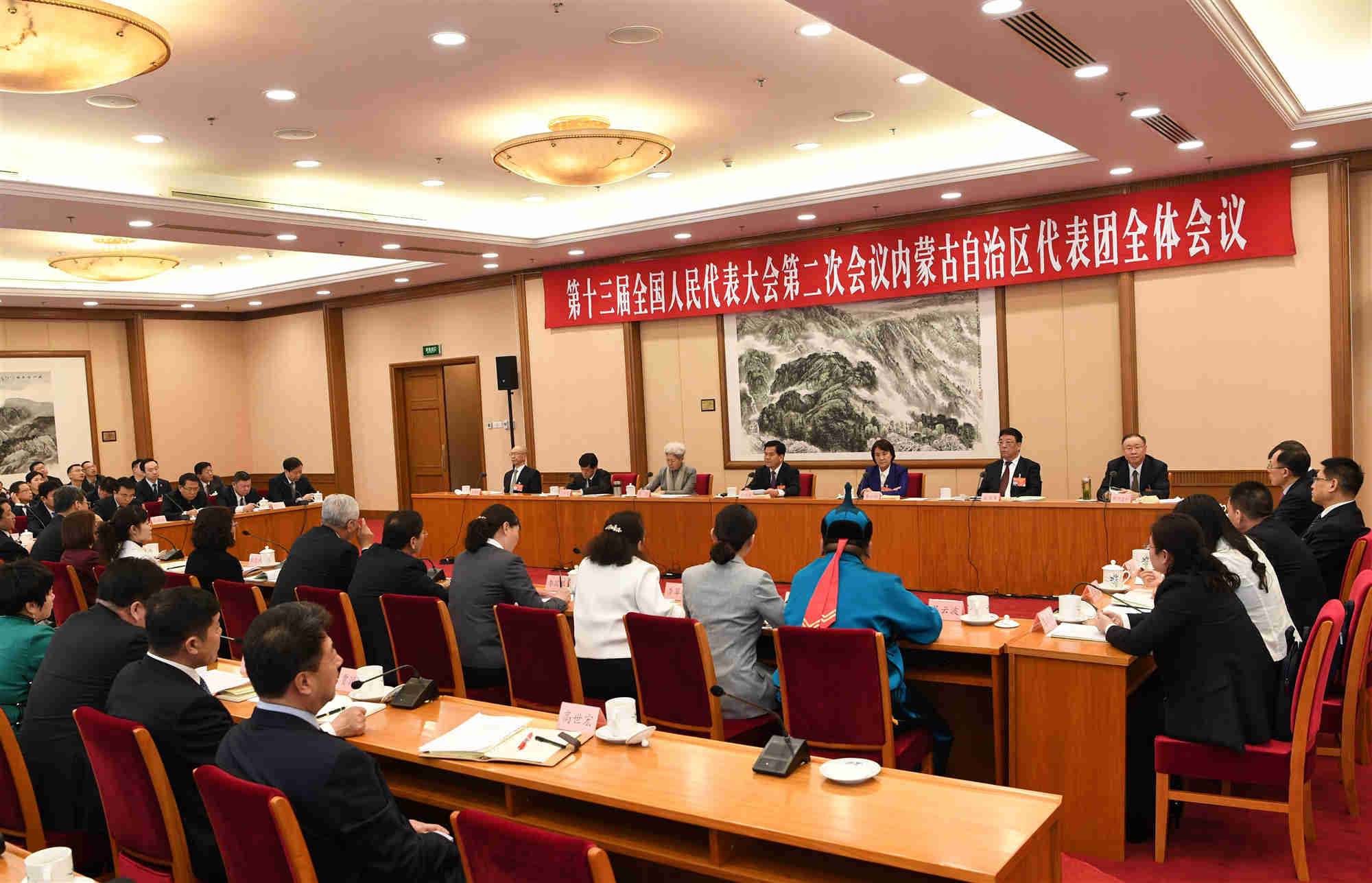 按照大會(huì)統(tǒng)一安排,3月3日下午,出席十三屆全國人大二次會(huì)議的內(nèi)蒙古代表團(tuán)在駐地召開全團(tuán)會(huì)議。