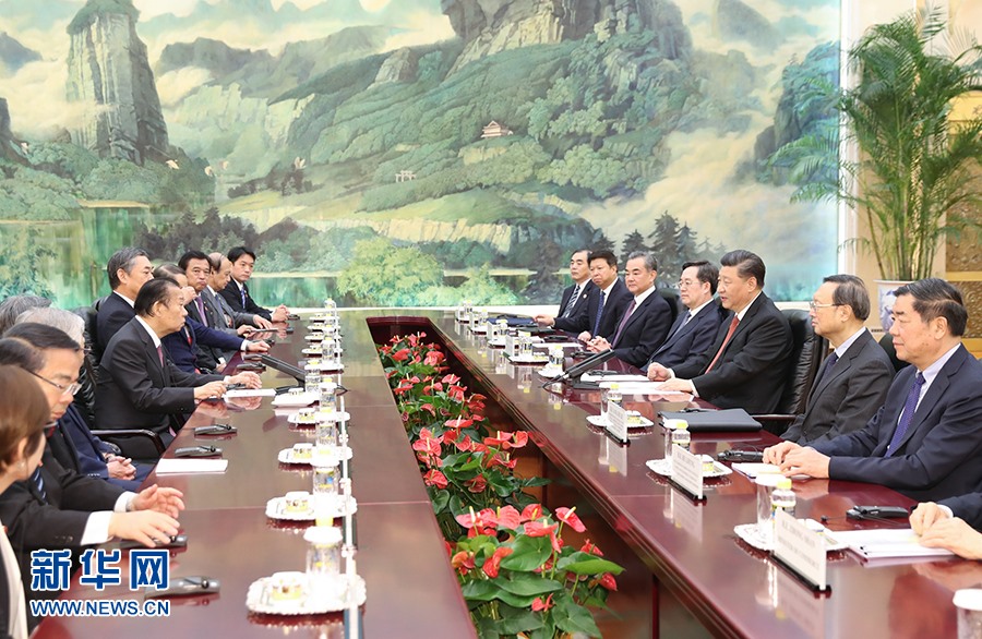 習(xí)近平指出,當(dāng)前,中日關(guān)系重回正常軌道,呈現(xiàn)積極發(fā)展勢頭。雙方要恪守中日四個(gè)政治文件確立的各項(xiàng)原則,堅(jiān)持和平友好大方向,持續(xù)深化互利合作,推動兩國關(guān)系健康穩(wěn)定發(fā)展。要把中日“互不構(gòu)成威脅”、“互為合作伙伴,相互支持對方和平發(fā)展”的政治共識落到實(shí)處,把兩國各領(lǐng)域交流合作推向新水平。雙方要深挖合作潛力。中方歡迎日方繼續(xù)深入?yún)⑴c中國改革開放,希望日方更加積極參與共建“一帶一路”。雙方要加強(qiáng)溝通和協(xié)調(diào),共同維護(hù)多邊主義和自由貿(mào)易,共同推動建設(shè)開放型世界經(jīng)濟(jì)。中方支持日方辦好二十國集團(tuán)領(lǐng)導(dǎo)人大阪峰會。今年是中日青少年交流促進(jìn)年,雙方要在兩國民間特別是青少年當(dāng)中廣泛播撒友好種子,推進(jìn)民心相通。