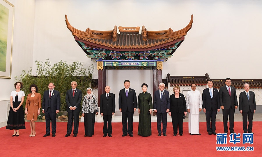 5月14日,國(guó)家主席習(xí)近平和夫人彭麗媛在北京人民大會(huì)堂舉行宴會(huì),歡迎出席亞洲文明對(duì)話大會(huì)的外方領(lǐng)導(dǎo)人夫婦及嘉賓。這是習(xí)近平和彭麗媛同外方領(lǐng)導(dǎo)人夫婦及嘉賓合影。 新華社記者 饒愛(ài)民 攝