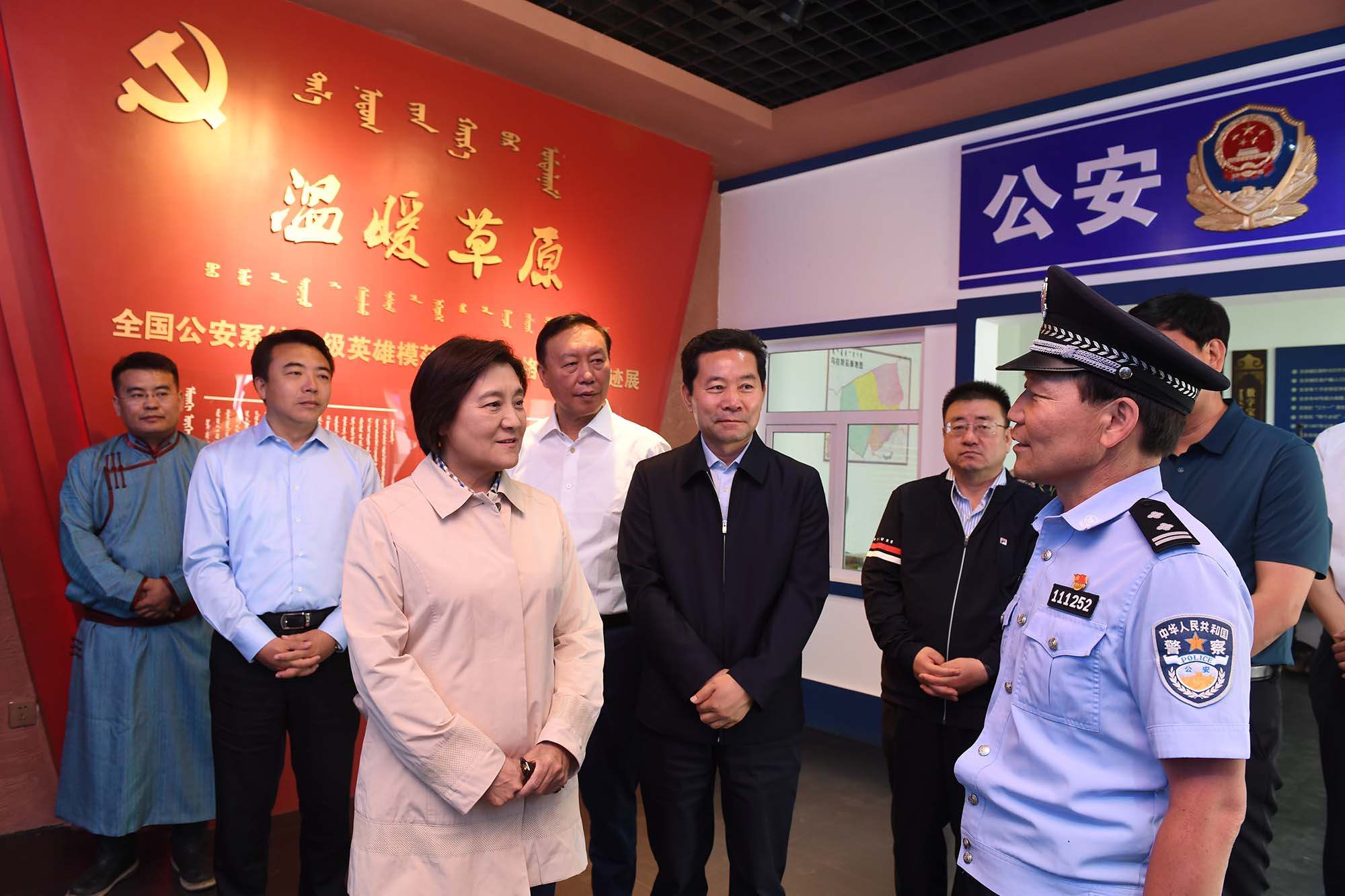 烏拉特后旗公安局潮格溫都爾鎮(zhèn)派出所民警寶音德力格爾被授予“全國公安系統一級英雄模范”榮譽稱號。布小林走進寶音德力格爾事跡館參觀,與寶音德力格爾親切交談,對他舍小家顧大家、為人民群眾無私奉獻的精神給予充分肯定。