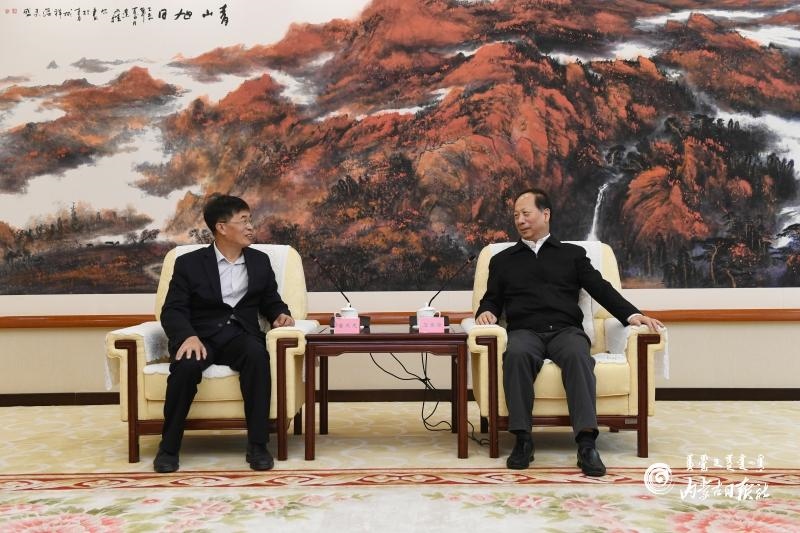 9月27日中午,石泰峰書記會見昆山科騰生物科技有限公司董事長魯茂龍。內(nèi)蒙古日報記者 袁永紅 攝