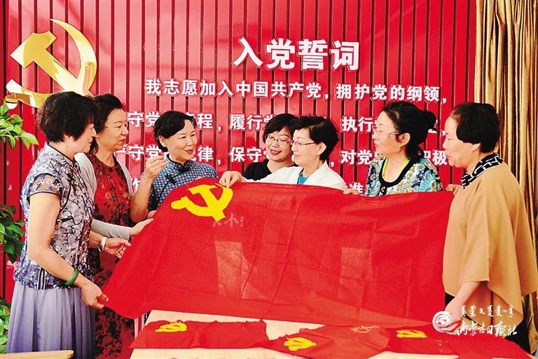 6月30日,呼和浩特市玉泉區(qū)五塔北街社區(qū)老黨員們正在一針一線繡黨旗。當(dāng)日,該社區(qū)舉行了“繡黨旗 迎七一”獻(xiàn)禮活動,老黨員、新黨員和志愿者一起繡黨旗、頌黨恩,抒發(fā)對黨的熱愛之情。(內(nèi)蒙古日報記者 安寅東 攝)