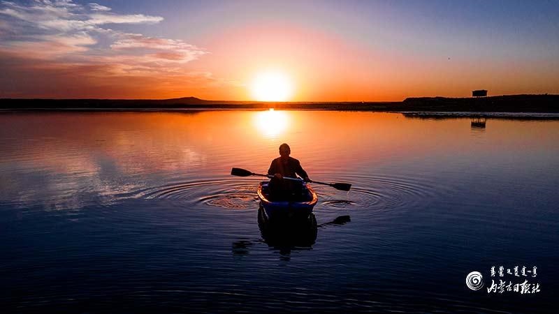 山氣日夕佳,飛鳥相與還。盛夏時節(jié),鄂爾多斯遺鷗國家級自然保護區(qū)大批夏候鳥、留鳥進入育雛季,成千上萬只候鳥時而盤旋云端、時而靜謐游憩。夕陽西下,水天一色、百鳥爭鳴,蔚為壯觀。