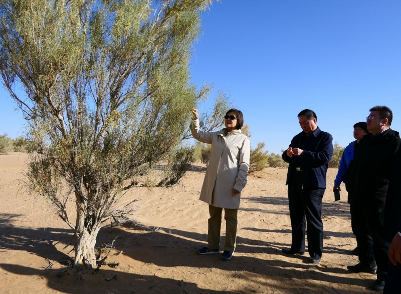 10月5日,自治區(qū)黨委副書(shū)記、自治區(qū)主席布小林到塔木素萬(wàn)畝天然梭梭林基地調(diào)研。李和善 攝