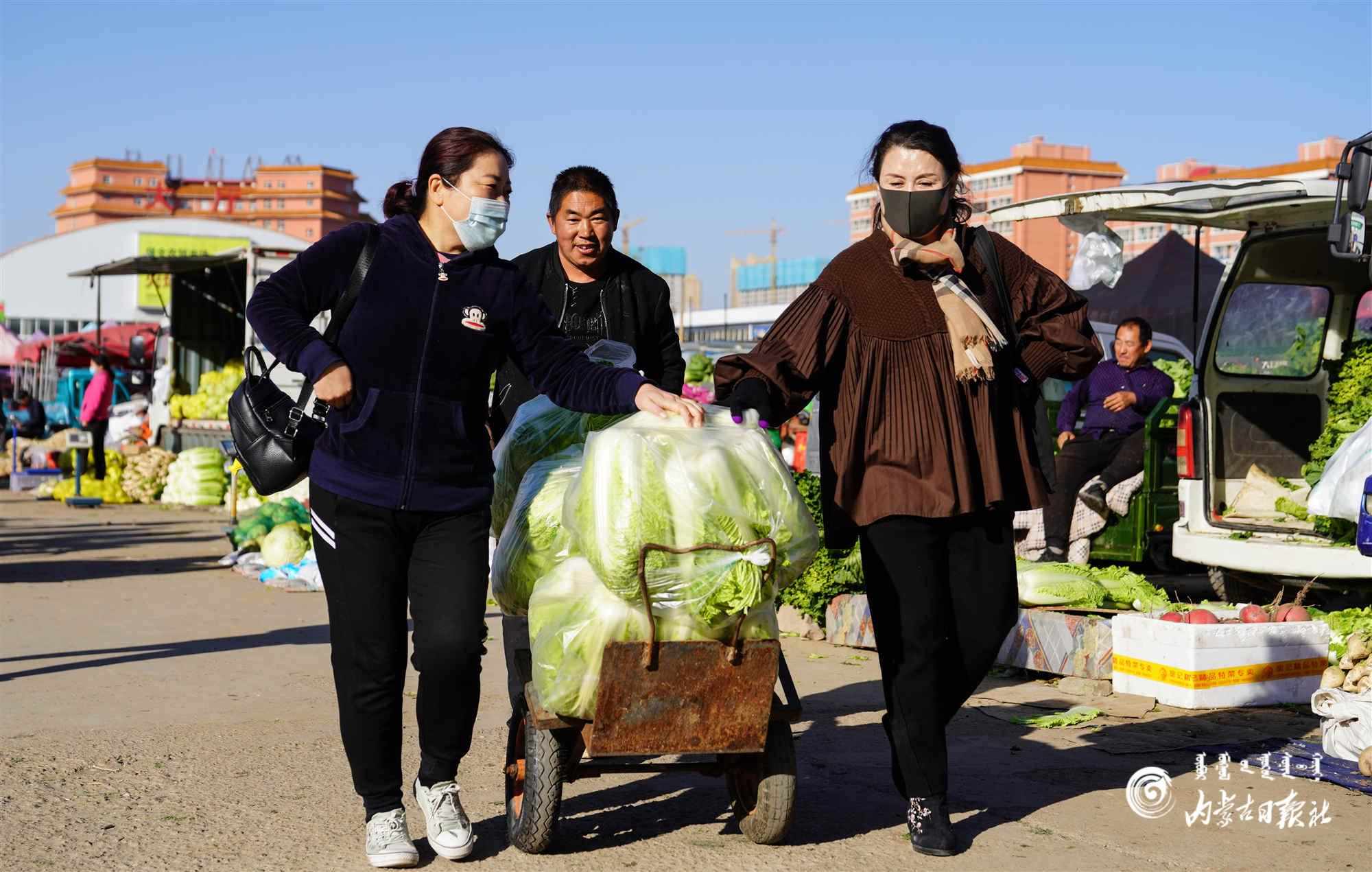 天氣轉(zhuǎn)涼冬儲(chǔ)菜集中上市10月14日,在呼和浩特市保全莊農(nóng)貿(mào)市場(chǎng)內(nèi),蔬菜商戶用小車為市民運(yùn)送冬儲(chǔ)大白菜。隨著冬季臨近,大白菜、土豆、大蔥等冬儲(chǔ)菜開始大批量進(jìn)入市場(chǎng),雖然現(xiàn)在冬季蔬菜供應(yīng)十分豐富,但購(gòu)買冬儲(chǔ)菜依然是許多市民的一種情懷。內(nèi)蒙古日?qǐng)?bào)記者 程英軍攝