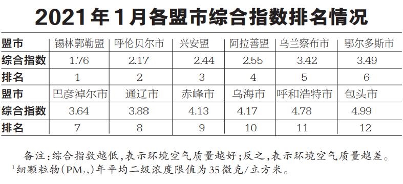 按照常規(guī)六項(xiàng)污染物綜合指數(shù)排名, 12個(gè)盟市環(huán)境空氣質(zhì)量由好至差依次為:錫林郭勒盟、呼倫貝爾市、興安盟、阿拉善盟、烏蘭察布市、鄂爾多斯市、巴彥淖爾市、通遼市、赤峰市、烏海市、呼和浩特市和包頭市。(內(nèi)蒙古日?qǐng)?bào)社融媒體記者 梁亮)