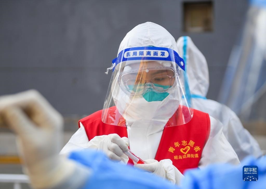 連日來,在呼和浩特市的戰(zhàn)“疫”路上,志愿者沖鋒在前。他們協(xié)助開展核酸檢測、社區(qū)管控等工作,為筑牢防疫安全屏障貢獻(xiàn)自己的力量。(新華社記者 彭源攝)