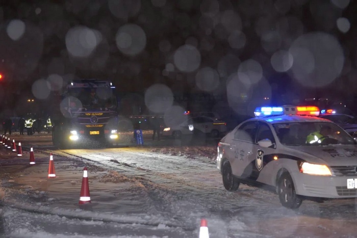 早上4時30分,經(jīng)公安民警、防疫工作人員認真核對司乘人員48小時內核酸檢測陰性證明、車輛信息及編號等準備工作后,229輛大貨車按照20輛一組要求,在警車的護送下順利駛出二連浩特市。