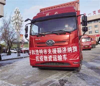 鑒于額濟納旗疫情防控任務(wù)依然艱巨、醫(yī)療物資用量仍然很大,呼和浩特市新冠病毒疫情聯(lián)防聯(lián)控暨新冠病毒疫情防控工作指揮部決定立即捐贈第一批價值300萬元的防疫物資。在呼和浩特市新冠病毒疫情聯(lián)防聯(lián)控暨新冠病毒疫情防控工作指揮部的統(tǒng)籌部署下,指揮部物資保障組成員單位市財政局、發(fā)改委、衛(wèi)健委、商務(wù)局、交通局、紅十字會全力以赴、齊心協(xié)力,愛心企業(yè)、金融機構(gòu)積極捐贈,呼和浩特警備區(qū)傾力相助,讓愛心“大禮包”如期發(fā)貨。在發(fā)車現(xiàn)場,中國銀行股份有限公司內(nèi)蒙古自治區(qū)分行辦公室主任葛華表示,面對疫情,中國銀行內(nèi)蒙古分行支援抗疫責無旁貸,重任在肩必須挺身,義無反顧地與全區(qū)人民站在一起,守望相助、同心戰(zhàn)“疫”、共克時艱,在積極做好疫情防控和金融服務(wù)的同時,主動擔當責任,通過紅十字會向呼和浩特市、阿拉善盟、二連浩特市捐款近百萬元,為地方開展疫情防控盡一份綿薄之力。金宇生物技術(shù)股份有限公司黨委副書記張占福告訴記者:“疫情無情,人間有愛。作為動物疫苗生產(chǎn)企業(yè),能為我區(qū)抗擊疫情出一份力,奉獻一份愛,是企業(yè)應(yīng)盡的社會責任和義務(wù)?!痹诠部挂咔榈年P(guān)鍵時刻,內(nèi)蒙古顯鴻科技股份有限公司積極響應(yīng)市政府號召,在做好企業(yè)疫情防控的同時,第一時間組織抗疫物資,用實際行動踐行顯鴻科技“愛黨、愛國、愛企、愛家”情懷。短短幾天時間內(nèi),伊利、蒙牛、盛健、華訊等18家企業(yè)進行愛心捐贈,大家同心同德、同向同行,堅決助力自治區(qū)打贏這場疫情防控阻擊戰(zhàn)。
