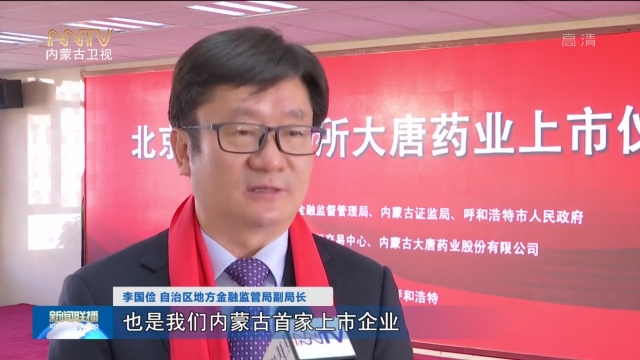 鄒烏蘭內(nèi)蒙古臺(tái)記者:這里是內(nèi)蒙古股權(quán)交易中心,隨著北京證券交易所鳴鐘開市,內(nèi)蒙古大唐藥業(yè)股份有限公司在北交所開市當(dāng)天正式上市,這也是內(nèi)蒙古第一家在北交所上市的企業(yè),標(biāo)志著內(nèi)蒙古率先參與北交所改革并實(shí)現(xiàn)重要突破。