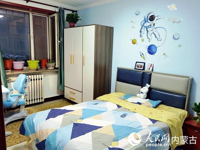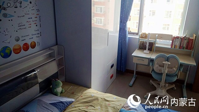 在對(duì)原有住房進(jìn)行規(guī)劃、設(shè)計(jì)后,施工隊(duì)開(kāi)始裝修,并配備必要的家具、臥具和學(xué)習(xí)生活用品。歷時(shí)半個(gè)多月,一間以藍(lán)色為主色調(diào)的小屋建成了。現(xiàn)在,屬于浩博的那一半臥室,泛黃的臥室墻壁被粉刷成淡藍(lán)色,換了新的小床和衣柜,新添置的書(shū)桌上擺滿了課外書(shū),看起來(lái)整潔又溫馨。