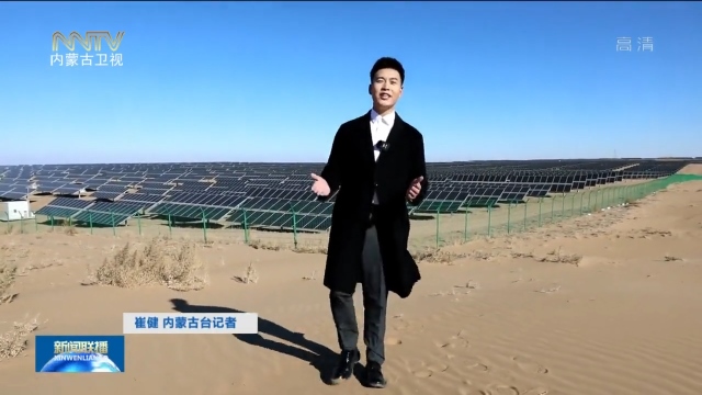 崔健內(nèi)蒙古臺記者:這里是中國第七大沙漠——庫布其沙漠,我現(xiàn)在所在的區(qū)域是鄂爾多斯市達拉特光伏發(fā)電應(yīng)用領(lǐng)跑者基地,也是全國最大的沙漠生態(tài)光伏發(fā)電站、全國最大光伏治沙基地。通過航拍鏡頭我們看到,這片區(qū)域的光伏板很壯觀,這里全部建成后年發(fā)電量可達40億度,年減排320萬噸二氧化碳,相當于種下2900萬棵樹。