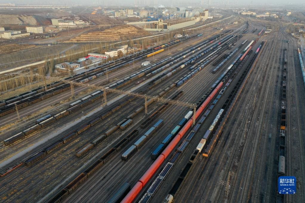 這是11月23日拍攝的中鐵呼和浩特局包頭西站(無人機(jī)照片)。作為西北地區(qū)重要的鐵路編組站,包頭西站每天的煤炭運輸量可達(dá)3萬噸以上。新華社記者朱文哲攝