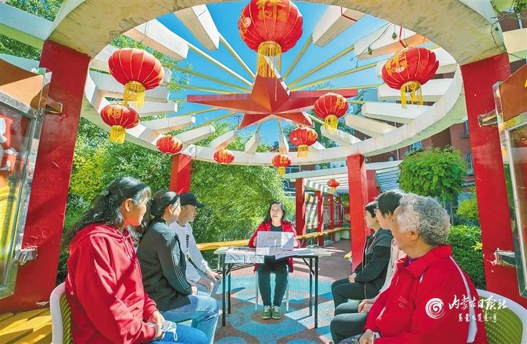 呼和浩特市玉泉區(qū)清泉街社區(qū)組織黨員干部群眾關(guān)注兩會熱點(diǎn)。內(nèi)蒙古日報(bào)社融媒體記者 王磊攝