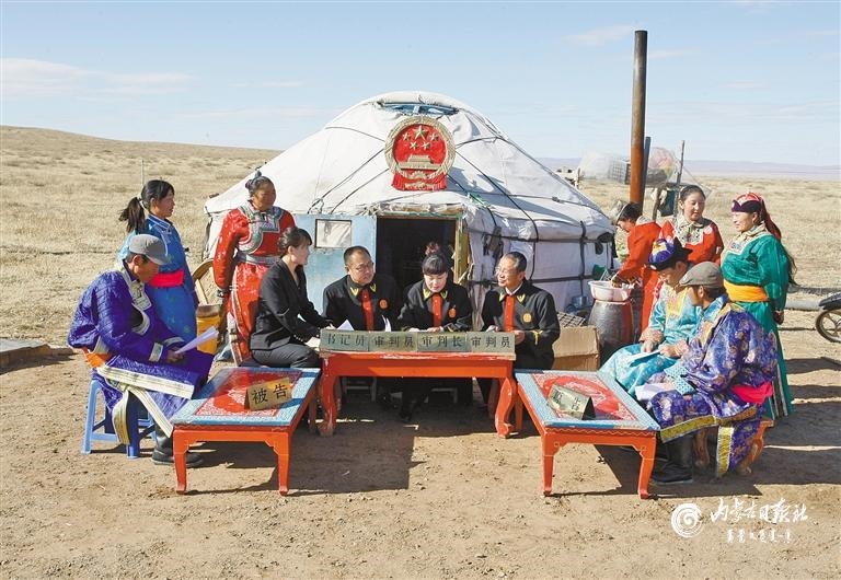 錫林浩特市人民法院組建的“牧區(qū)巡回法庭”開到了牧民家門口,被當(dāng)?shù)厝罕娪H切地稱為“馬背法庭”。內(nèi)蒙古日報(bào)社融媒體記者 馬建荃 攝