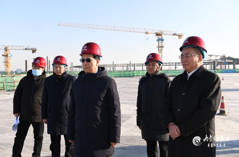 隨后,石泰峰來到新機場航站區(qū)建設(shè)現(xiàn)場,深入考察航站樓等相關(guān)工程建設(shè)進度,詳細了解工程配套情況。他強調(diào),要緊盯序時進度目標(biāo),掛圖作戰(zhàn)、跑表計時,在保證質(zhì)量和安全的前提下,全力加快新機場建設(shè)進度,確保如期完成建設(shè)任務(wù)。對項目推進中遇到的實際問題,市委和政府要強化擔(dān)當(dāng)意識、服務(wù)意識,積極協(xié)調(diào)各方研究解決。在聽取呼和浩特市區(qū)域空間規(guī)劃及交通體系規(guī)劃等情況介紹后,石泰峰強調(diào),城市建設(shè)發(fā)展一定要做到科學(xué)規(guī)劃,每個城市片區(qū)都要體現(xiàn)高質(zhì)量發(fā)展要求,確保功能優(yōu)化,實現(xiàn)產(chǎn)城融合,防止因規(guī)劃不科學(xué)留下敗筆。要充分發(fā)揮呼和浩特新機場對產(chǎn)業(yè)和區(qū)域發(fā)展的輻射帶動作用,高起點規(guī)劃建設(shè)現(xiàn)代化臨空經(jīng)濟區(qū)和空港城,做大做強航空物流、電子信息等產(chǎn)業(yè),積極培育航空總部、跨境電子商務(wù)等業(yè)態(tài),推動實現(xiàn)以航興城、以城促航。