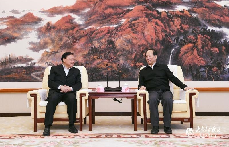 1月17日,自治區(qū)黨委書記、人大常委會主任石泰峰在呼和浩特會見中國交通建設(shè)集團(tuán)黨委書記、董事長王彤宙。內(nèi)蒙古日報社融媒體記者袁永紅攝
