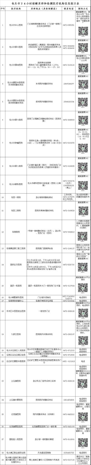 相關(guān)公示:包頭市24小時(shí)核酸采樣檢測(cè)機(jī)構(gòu)和臨時(shí)采樣點(diǎn)公示