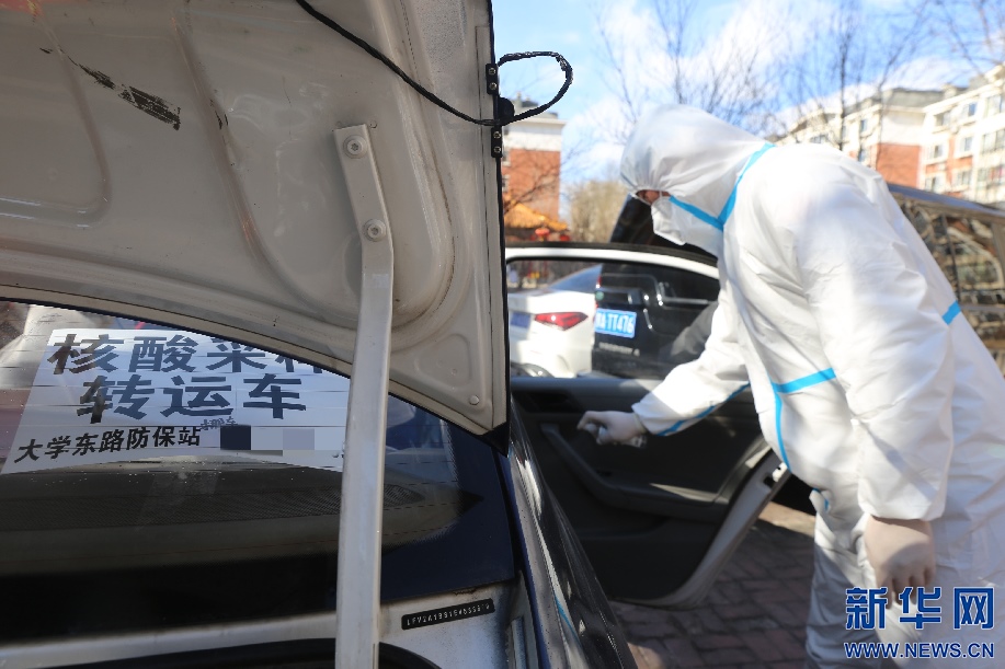 2月15日,新冠肺炎疫情突襲呼和浩特,籍東斌和同事們響應(yīng)號召成為志愿者,負(fù)責(zé)核酸檢測樣本轉(zhuǎn)運(yùn)工作。新華網(wǎng)發(fā) 李倩攝