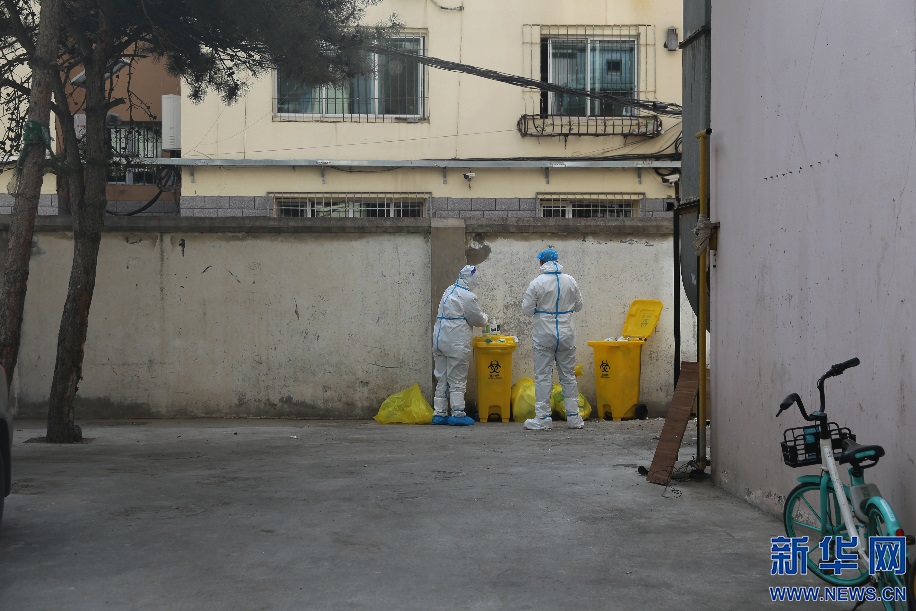 經(jīng)過連日配合,籍東斌和運(yùn)送樣本的搭檔形成了默契,一個(gè)動作一個(gè)眼神就知道搭檔需要什么幫助?!八⊥陿颖镜怯浲曛?,我要幫助她做消殺?!奔畺|斌說。新華網(wǎng)發(fā) 李倩攝