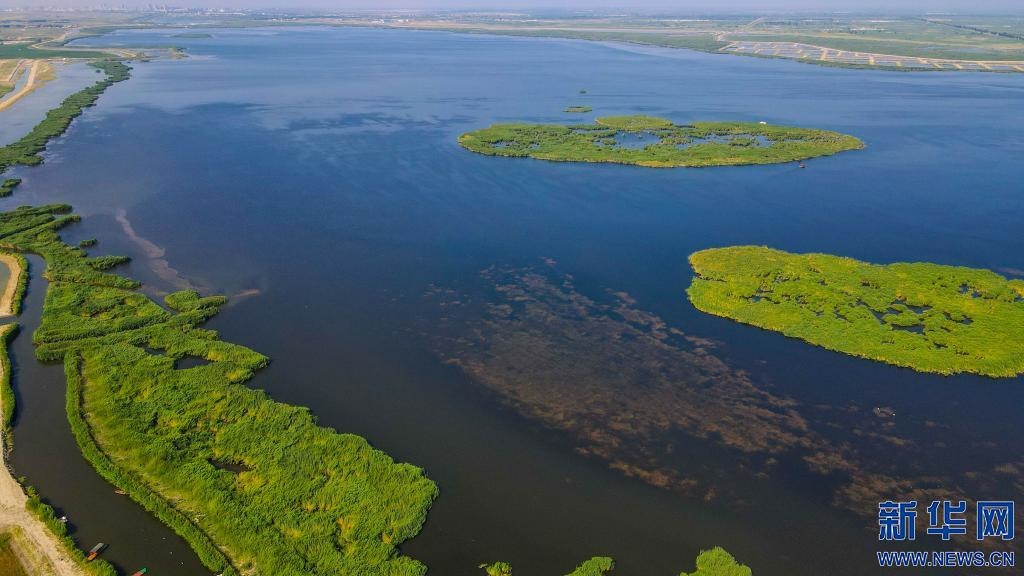 經(jīng)過(guò)多年治理,烏梁素海重現(xiàn)“塞外明珠”美景(無(wú)人機(jī)照片)。新華社記者彭源 攝