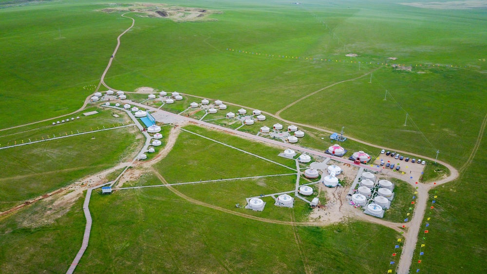 這是內蒙古錫林郭勒盟寶力根蘇木的一處那達慕會場(2017年7月21日攝,無人機照片)。新華社記者連振攝