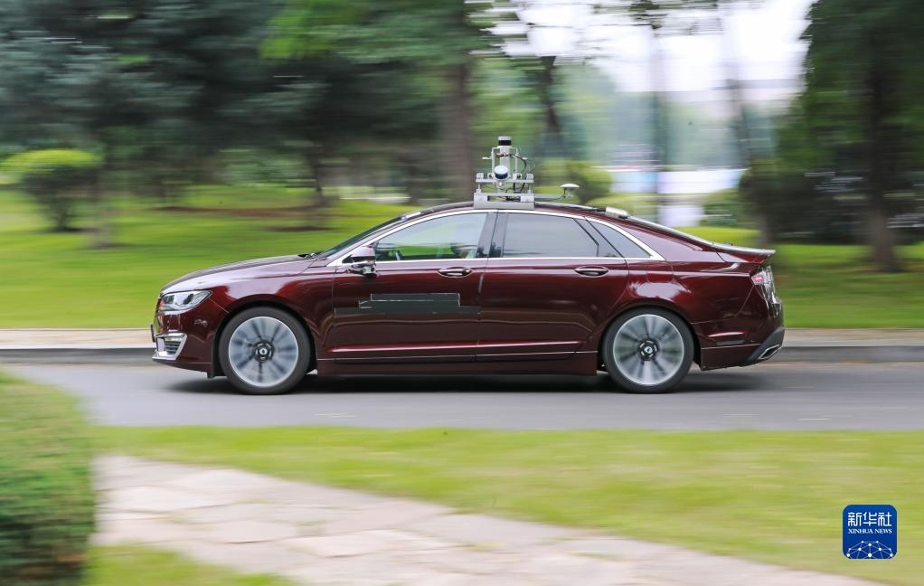 2021年7月9日,在沈陽(yáng)市渾南區(qū)東軟軟件園,自動(dòng)駕駛汽車在封閉道路上進(jìn)行行駛測(cè)試。新華社記者 楊青 攝