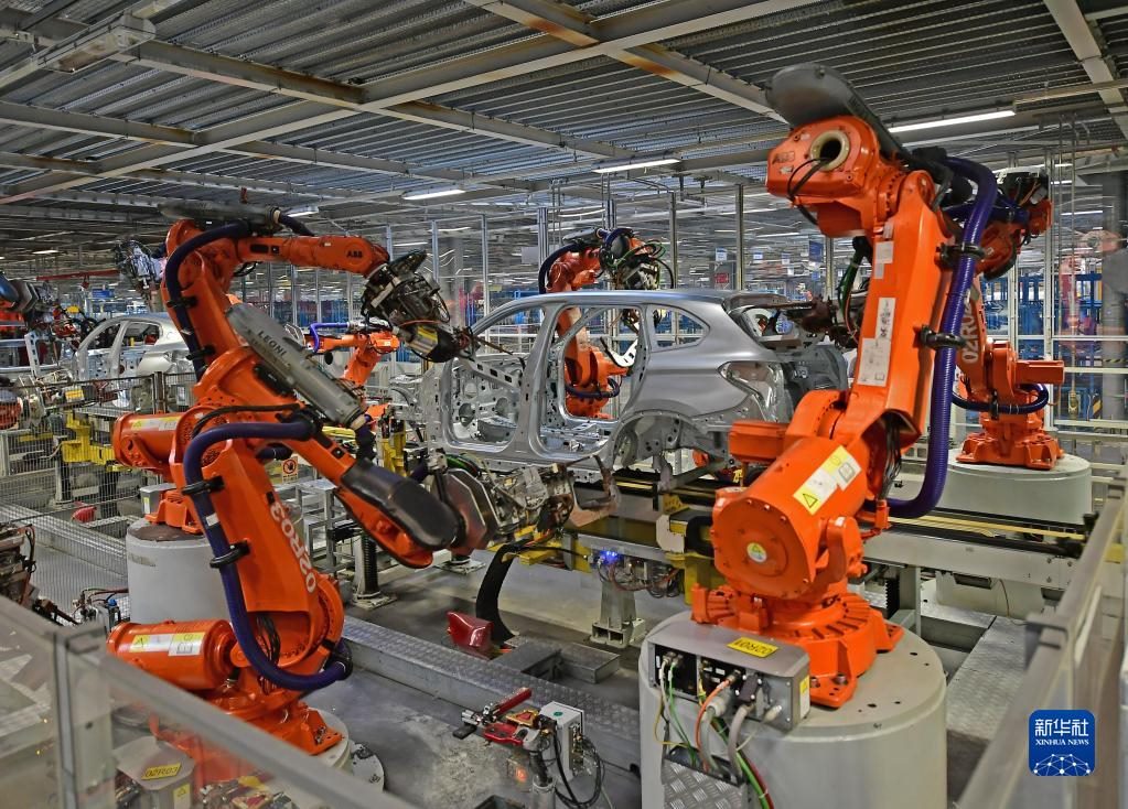 2022年2月16日,在華晨寶馬沈陽(yáng)鐵西工廠車身車間,機(jī)器臂在焊接車身。新華社記者 楊青 攝