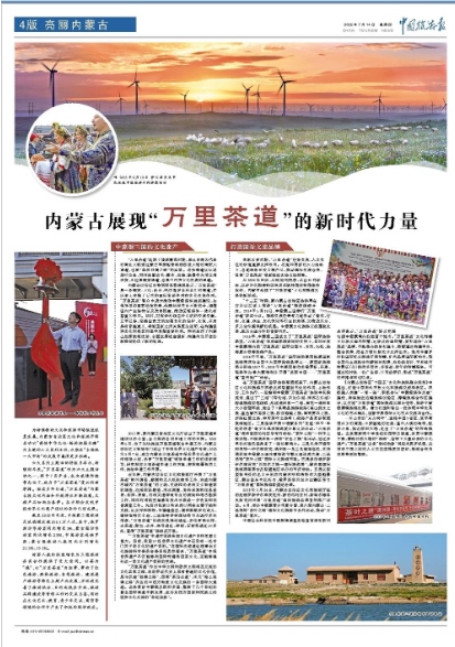 7月14日,《中國旅游報》4版刊發(fā)《內(nèi)蒙古展現(xiàn)“萬里茶道”的新時代力量》,全文如下:
