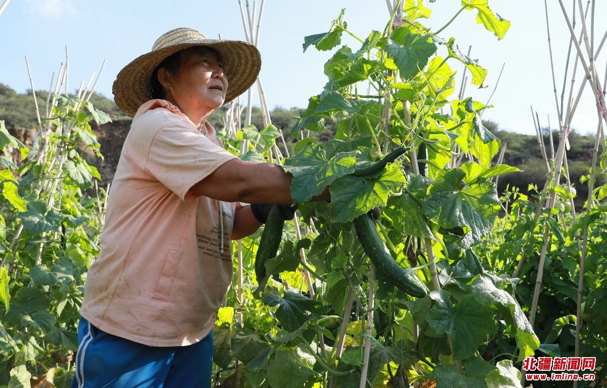 村民在采摘園采摘蔬菜