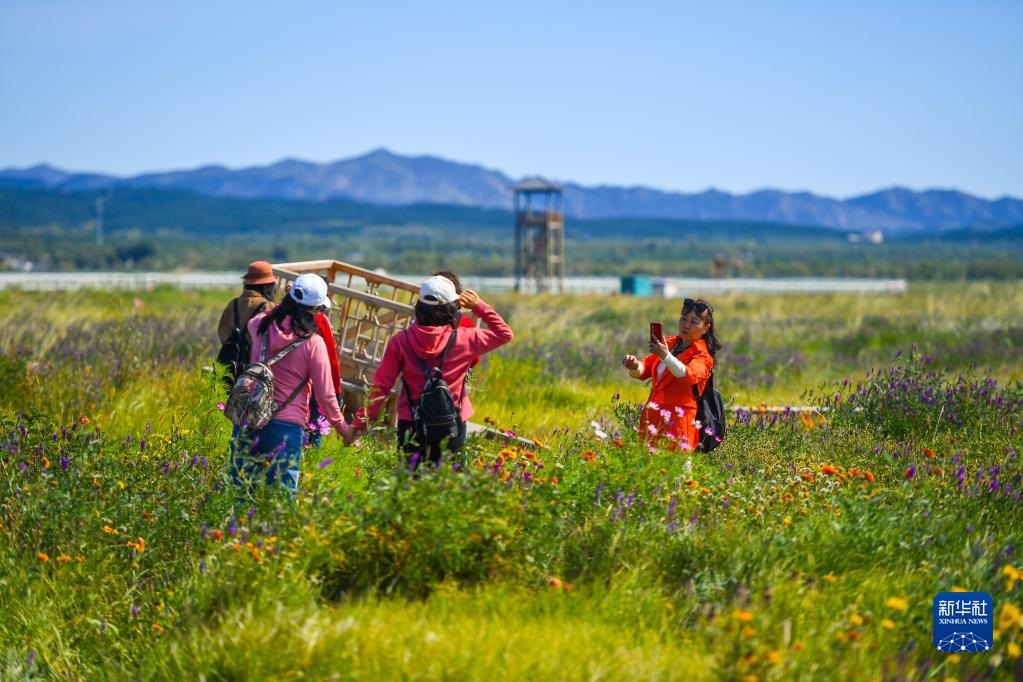 初秋的敕勒川草原,花香、草香撲面而來(lái),綠草之間泛著淡淡鵝黃,與白、紅、紫等各色小花繪成一幅層次鮮明的風(fēng)景畫。