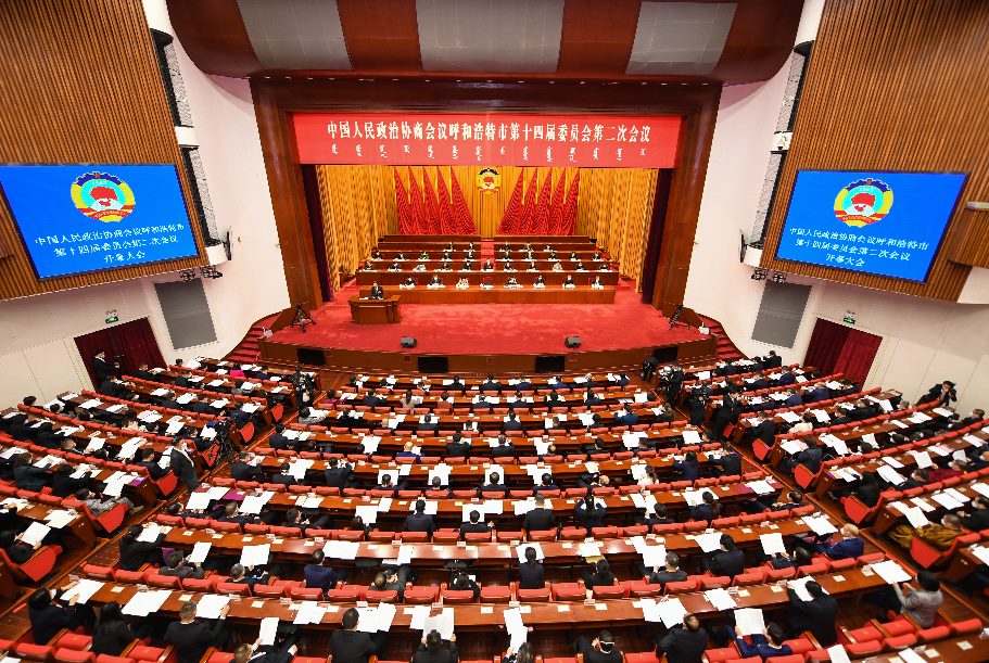呼和浩特市政協(xié)十四屆二次會議開幕大會現(xiàn)場。新華網(wǎng) 發(fā)(王劭凱 攝)