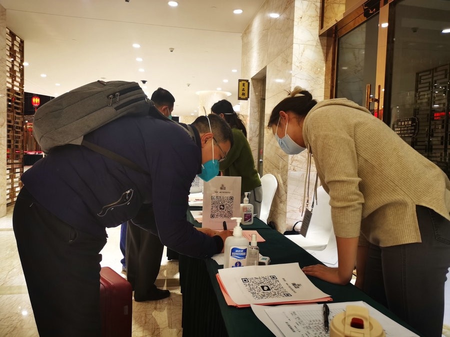 在駐地報(bào)到處,政協(xié)委員們有序領(lǐng)取相關(guān)材料,認(rèn)真辦理有關(guān)手續(xù)。