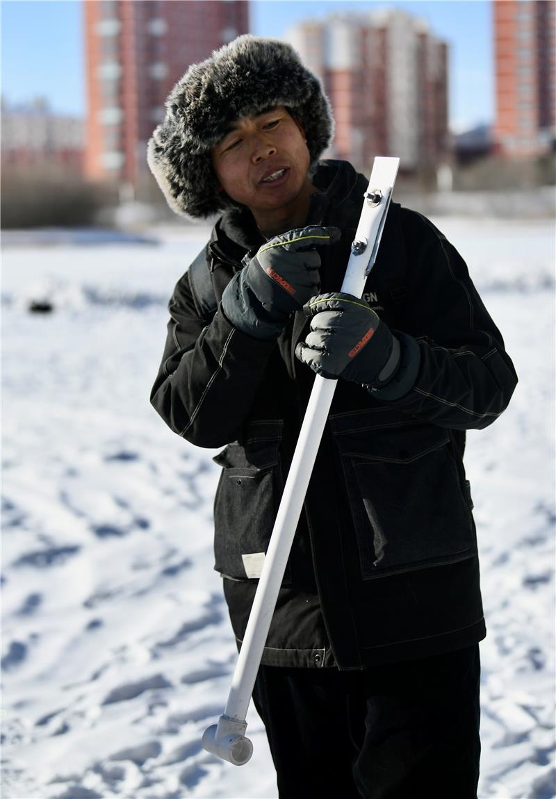 在伊敏河冰面上雕刻出