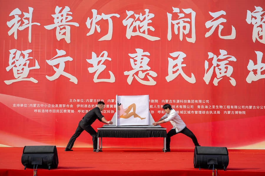 當(dāng)日(正月十四),內(nèi)蒙古科協(xié)等單位在寶鼎廣場(chǎng)舉辦了科普燈謎鬧元宵暨文藝惠民演出活動(dòng)。