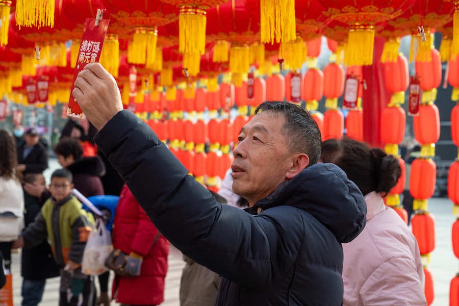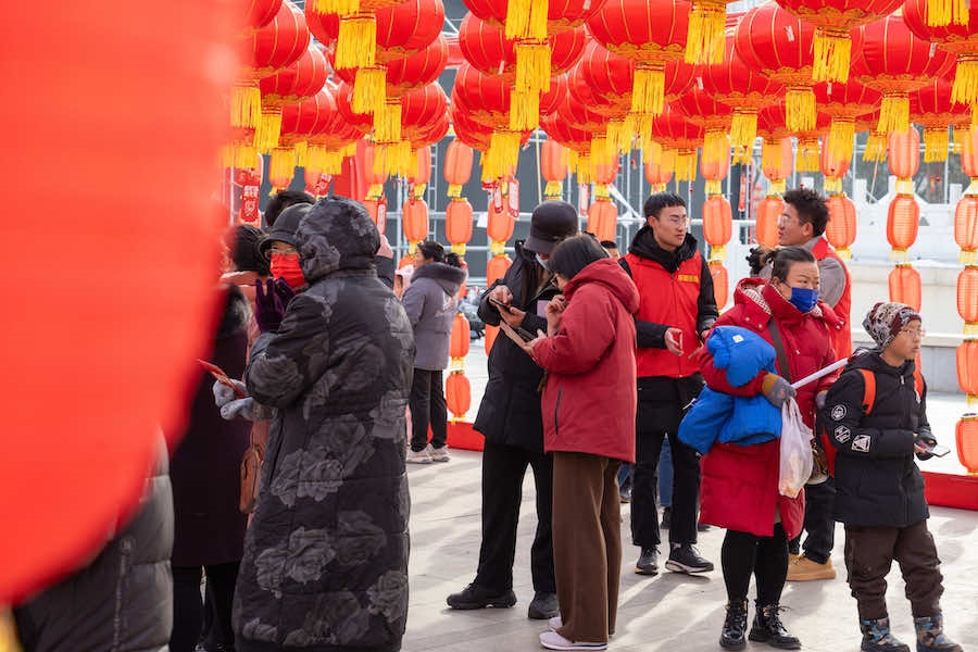 2月23日下午,在內(nèi)蒙古呼和浩特寶鼎廣場(chǎng),市民游客拿著燈謎卡來(lái)到禮品兌換區(qū),興奮不已地排隊(duì)等待著。