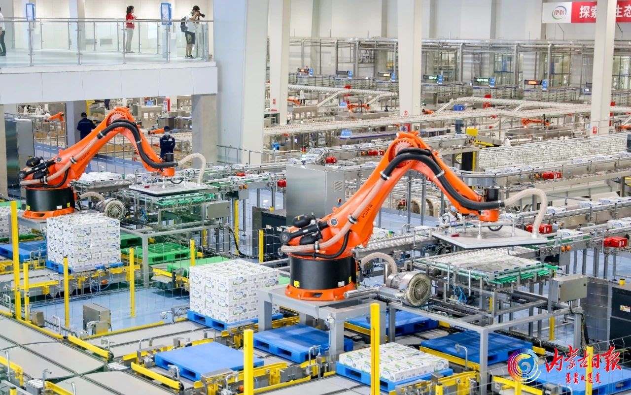 伊利現(xiàn)代健康谷液態(tài)奶全球智造標桿基地繁忙的生產線。 (資料圖)