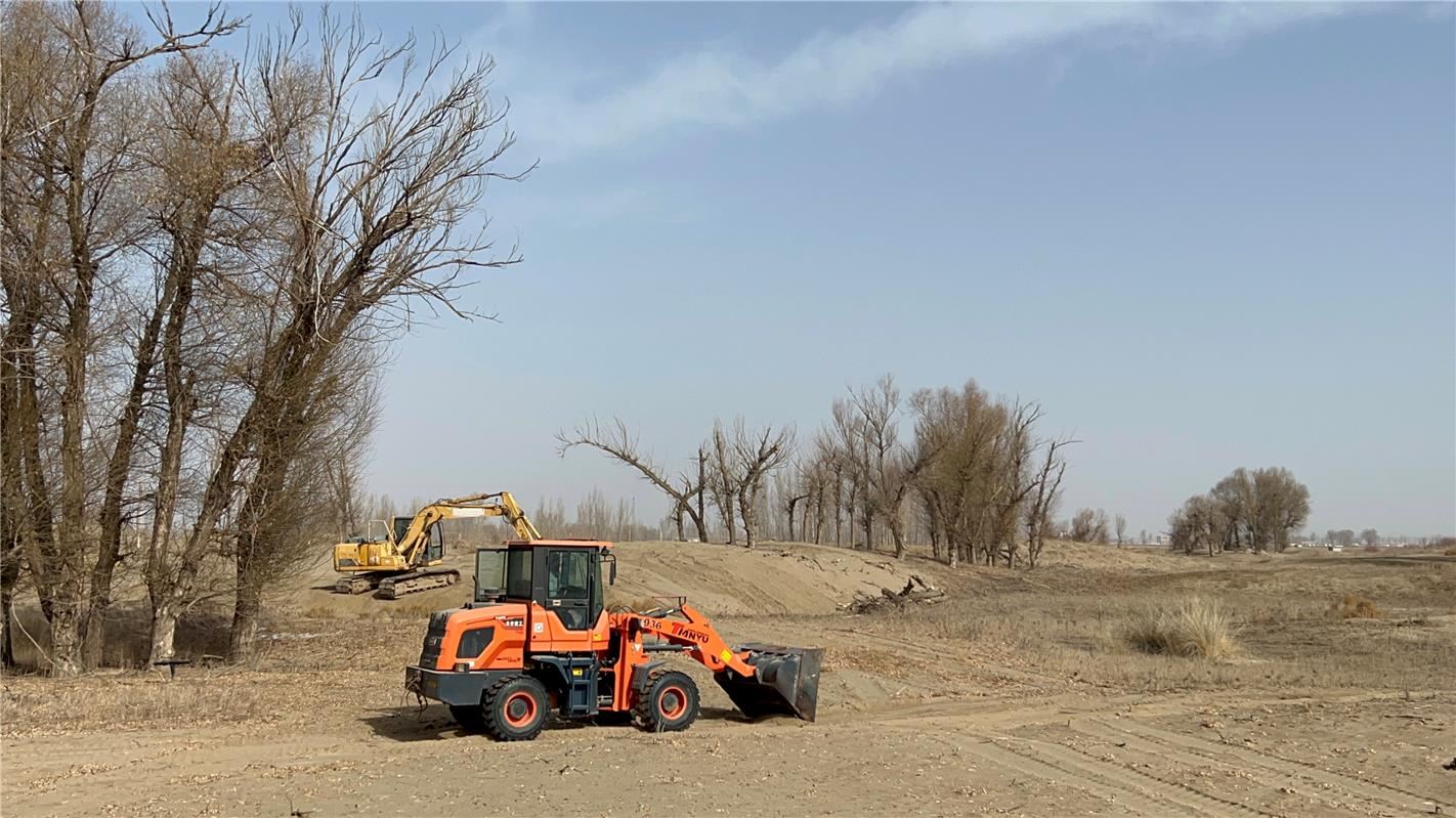 2月28日,春意萌動(dòng),萬物生長。進(jìn)入巴彥淖爾市臨河區(qū)國營新華林場,一幅紅彤彤的對(duì)聯(lián)——“生態(tài)優(yōu)先綠色發(fā)展勇?lián)姑晃菲D難”映入眼簾,與兩旁高高掛起的紅燈籠相映成趣。另一邊,數(shù)臺(tái)大型機(jī)械往來穿梭,開始了今年的植綠工作。