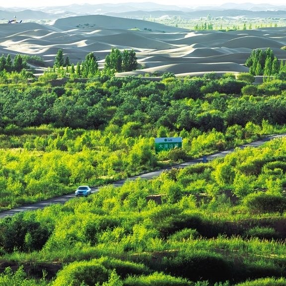 以路治沙模式:從2003年至今,赤峰市翁牛特旗先后開通13條穿沙公路,五橫八縱將翁牛特旗境內(nèi)的科爾沁沙地切割成若干生態(tài)治理區(qū),不僅方便治沙物資、治理措施進(jìn)入沙漠腹地,也打通了沙區(qū)發(fā)展的通道。