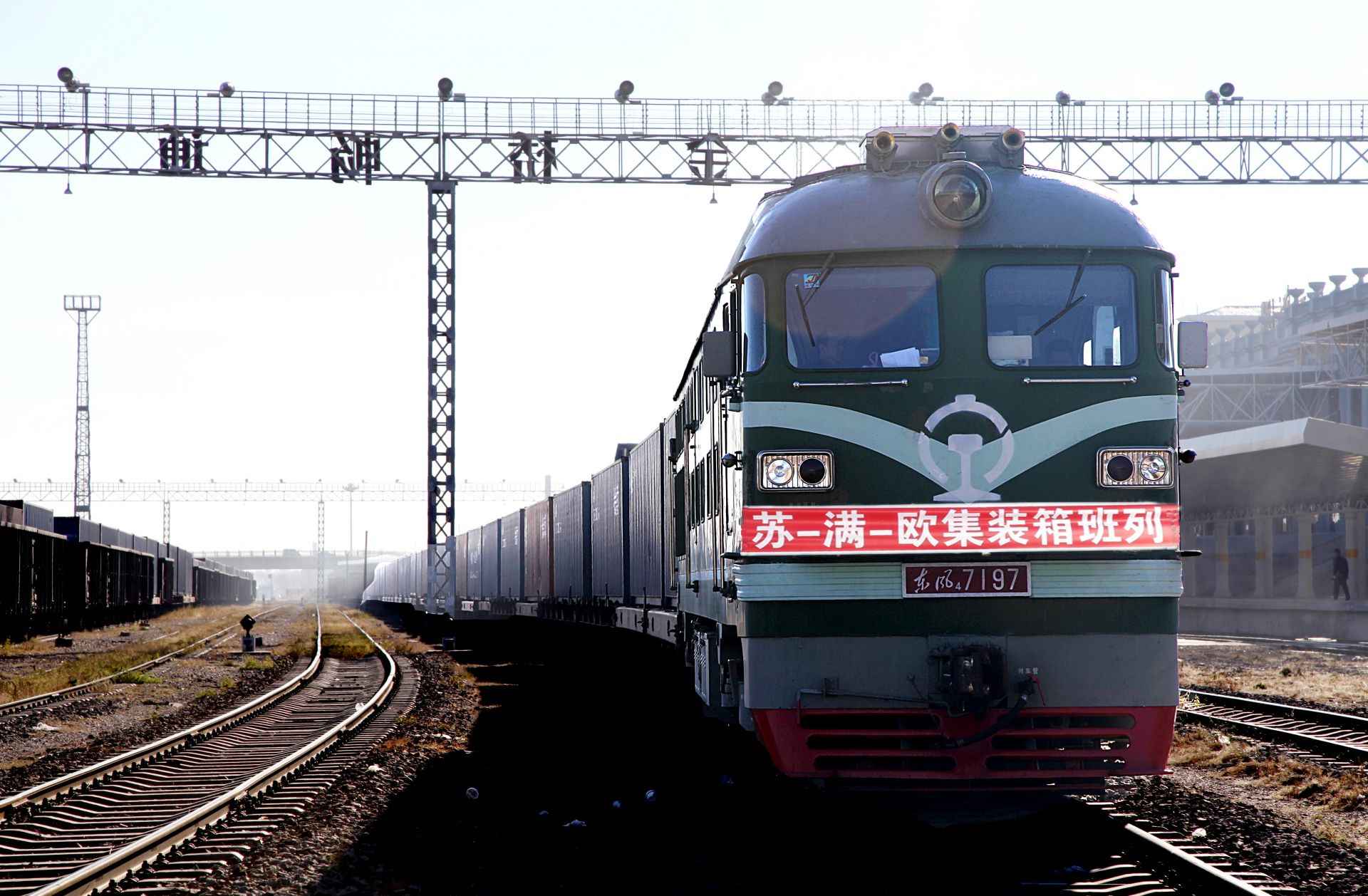 蘇-滿-歐集裝箱班列在滿洲里換裝。李新軍攝